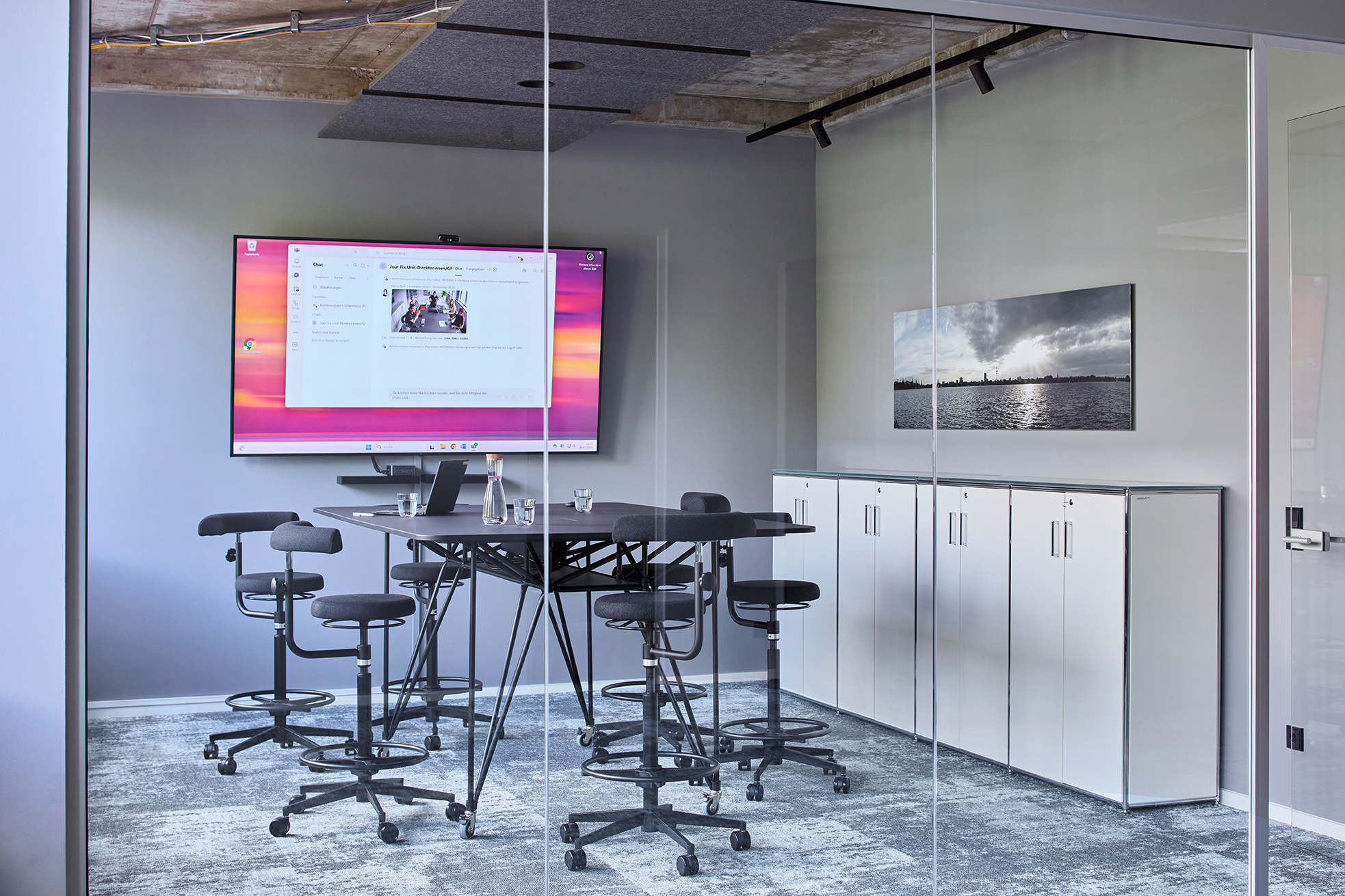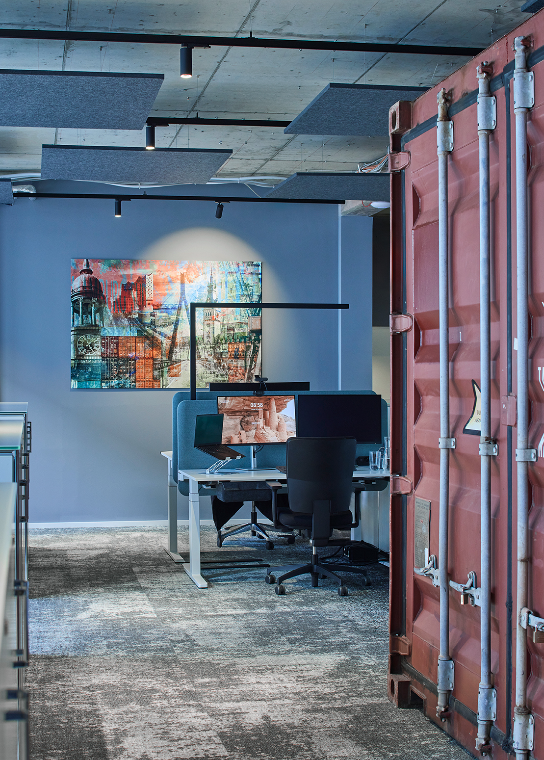 #newwork #handwerktechnikdesign #innenarchitektur #umbau #office #medienagentur #hamburg #officedesign #newwork #teamwork #teppich #cube #Lichtdesign #innenausbau #glaswand #büro